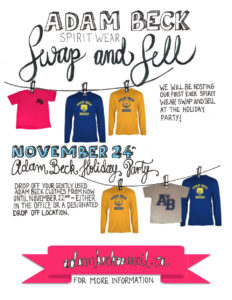 Do you have Adam Beck Spirit Wear that is too small for your kids? Are you looking for Spirit Gear? The Spirit Committee has you covered! We will be hosting a Spirit Wear Swap and Sell at the Holiday Party on Saturday November 24th.