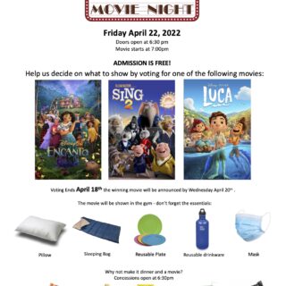 January 24th Movie Night – Voting Now Open! Our next Movie Night is Friday, January 24th. Please help us choose which movie to vote for by voting here. For all the...
